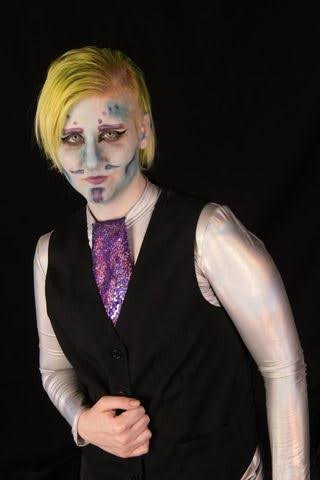 For the 4/20 show again, I wanted to be kind of like a funny stoner. I have ones like that where I’ll do a more human look and incorporate little things that are kind of alien-like, like I drew this third eye on my forehead. I think I try to bring little elements of my alien persona to different shows, but it depends on what exactly I’m doing. We had that king photoshoot, and for that, I went with kind of a masculine look [pictured], but I painted my face blue. I try to go for a humanoid alien, unless I’m really going all-out like I did at the Neurodiversity show.